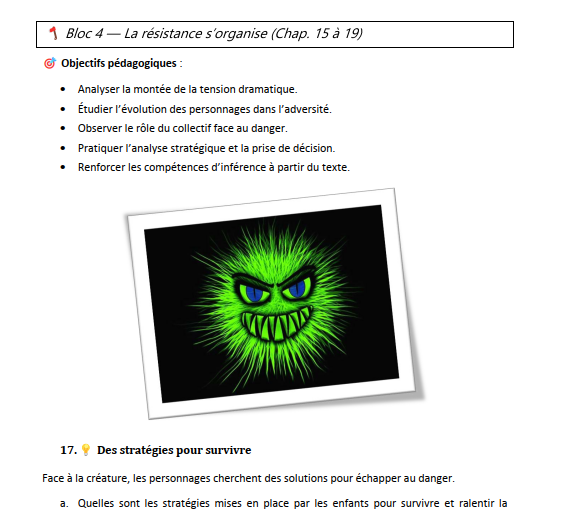 Défis variés : questions, analyses, résumés, activités d’écriture.