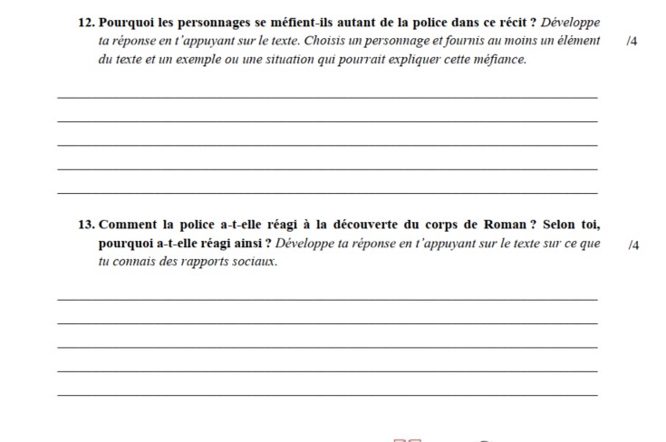 Chaque question ouverte est accompagnée de repères de correction pour un suivi clair et rapide. Ce test permet de vérifier la lecture attentive tout en stimulant la réflexion critique.